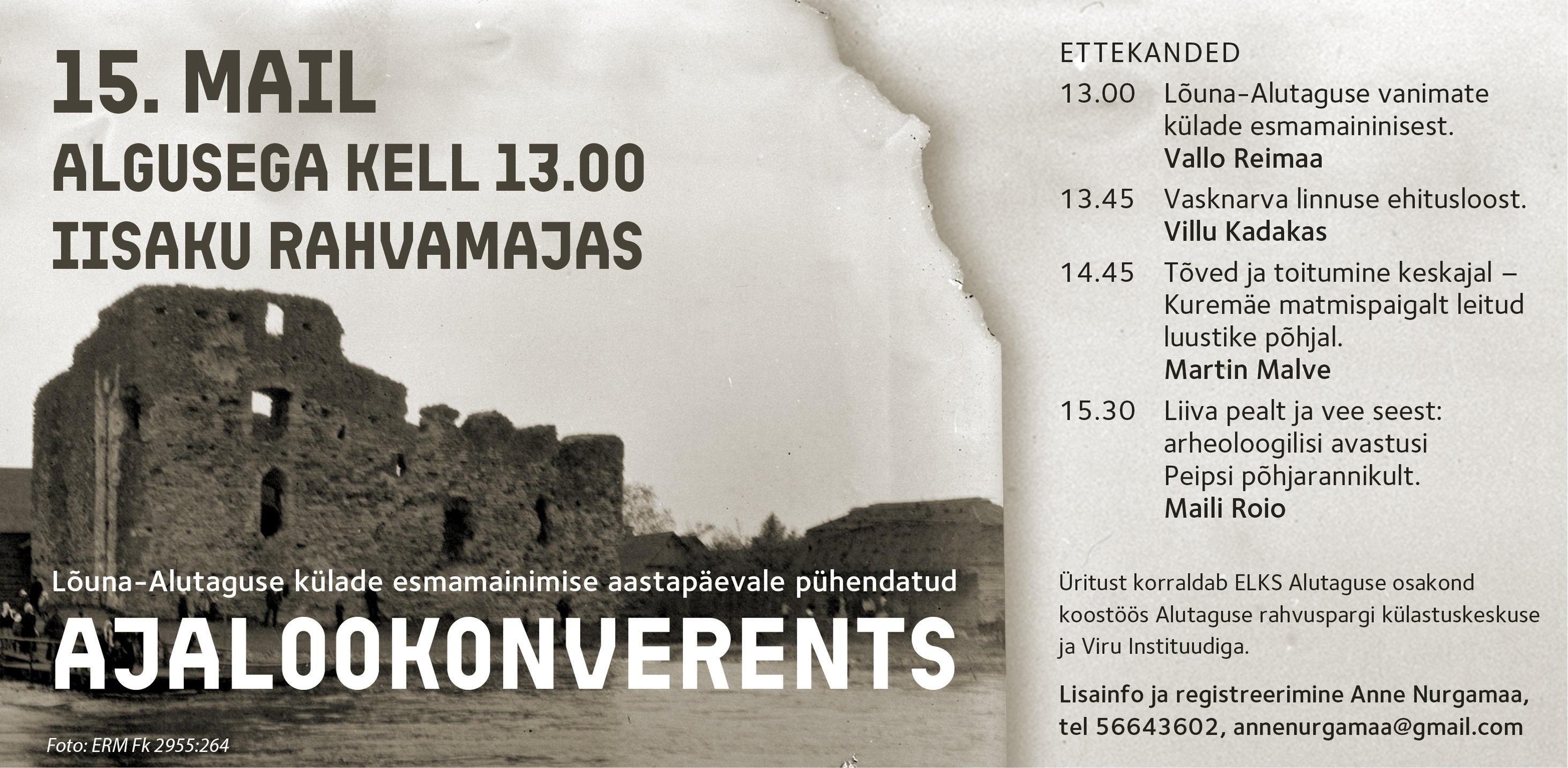 15. mail algusega kell 13.00 toimub Iisaku rahvamajas Lõuna‑Alutaguse külade esmamainimise aastapäevale pühendatud ajalookonverents.