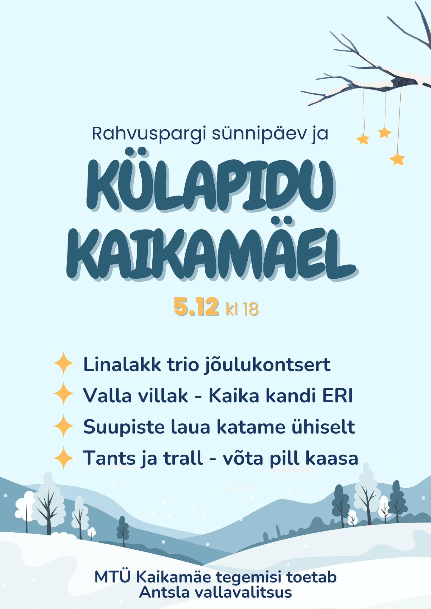 Reedel, 5. detsember kell 18 olete oodatud Kaika seltsimajja Kaikamäel pidama Karula rahvuspargi sünnipäeva ja külapidu.