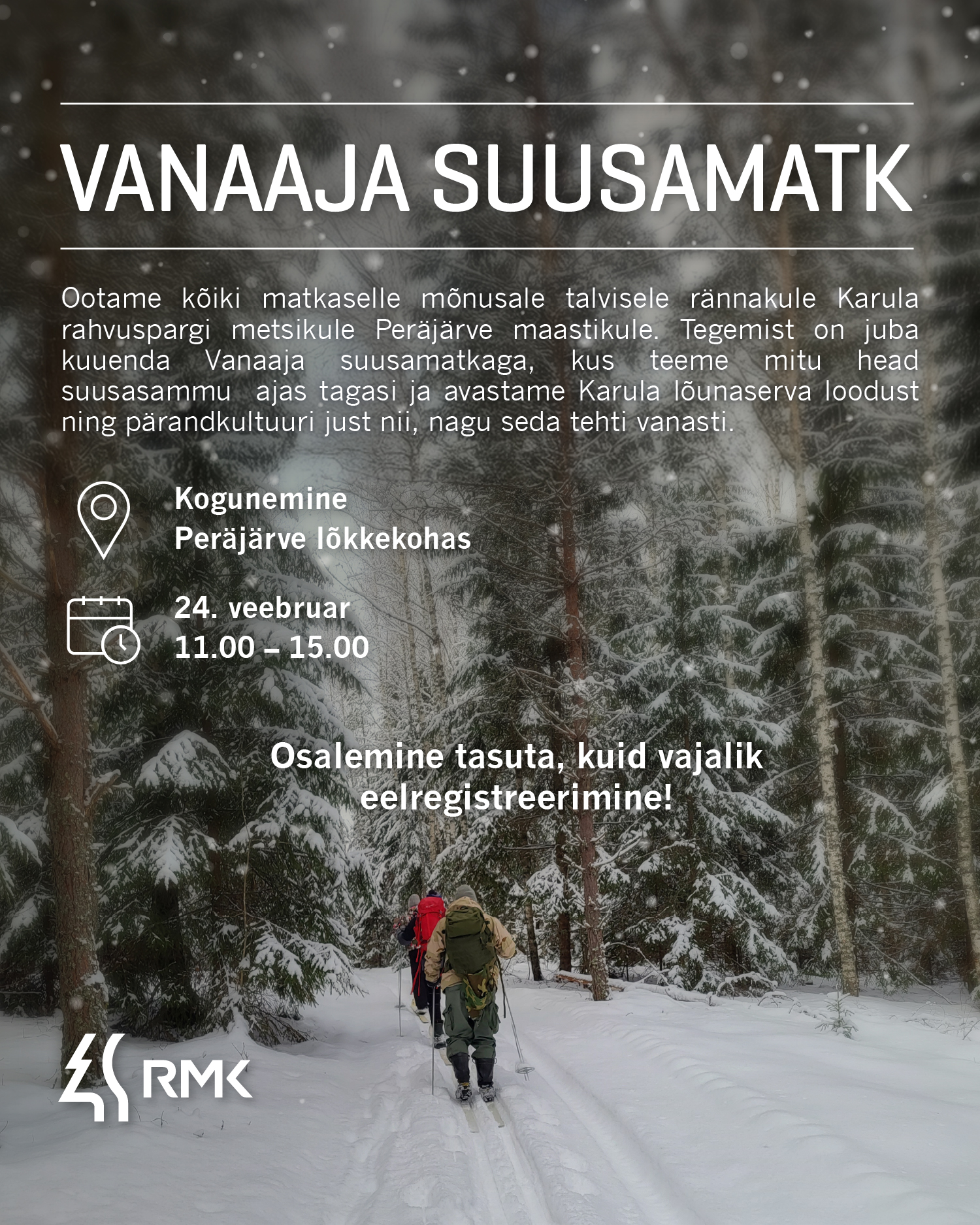 Helen KivisildRMK kutsub kõiki matkaselle 24. veebruaril 2026 algusega kell 11 mõnusale talvisele rännakule Karula rahvuspargis.